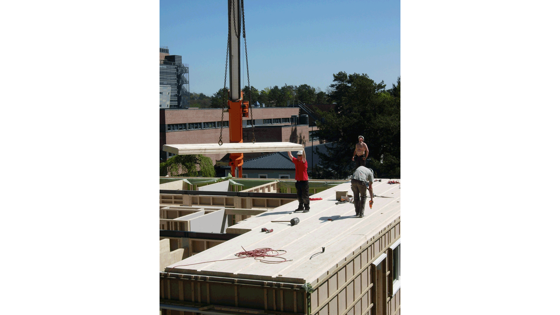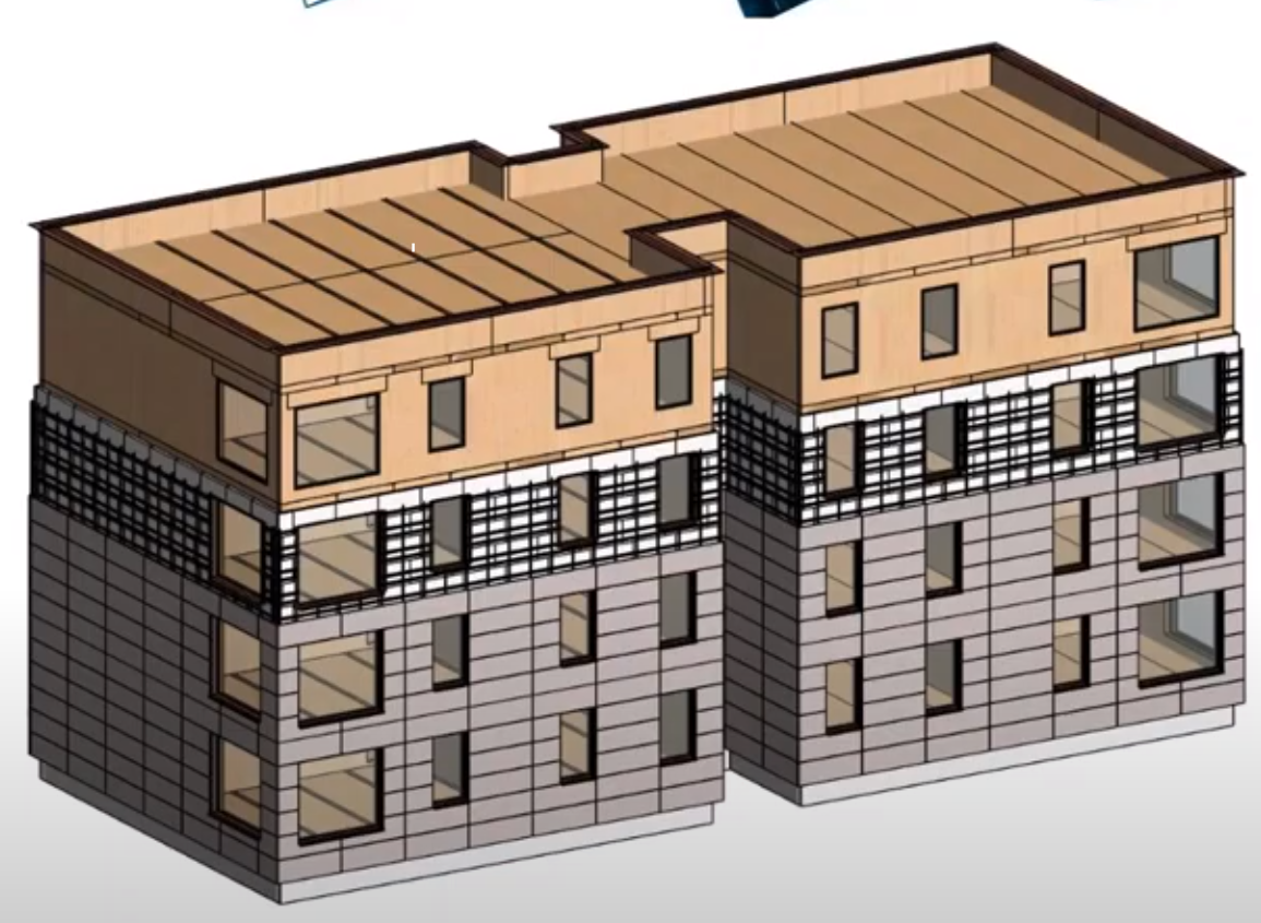 Traditionally engineers use concrete frames when the height of the structure increases. Nowadays, glue-laminated timber structures and cross-laminated timber panes are used to reduce carbon materials. A column and beam system with a framework and CLT panels are placed on a solid concrete foundation. Glued Laminated timber columns and beams are used in the building frames of the intermediate floors, roofs, and external walls by installing diagonally to achieve rigidity. Open, convertible, and massive openings in facades are produced using a column-and-beam system, allowing for flexible spatial layout and wall openings.