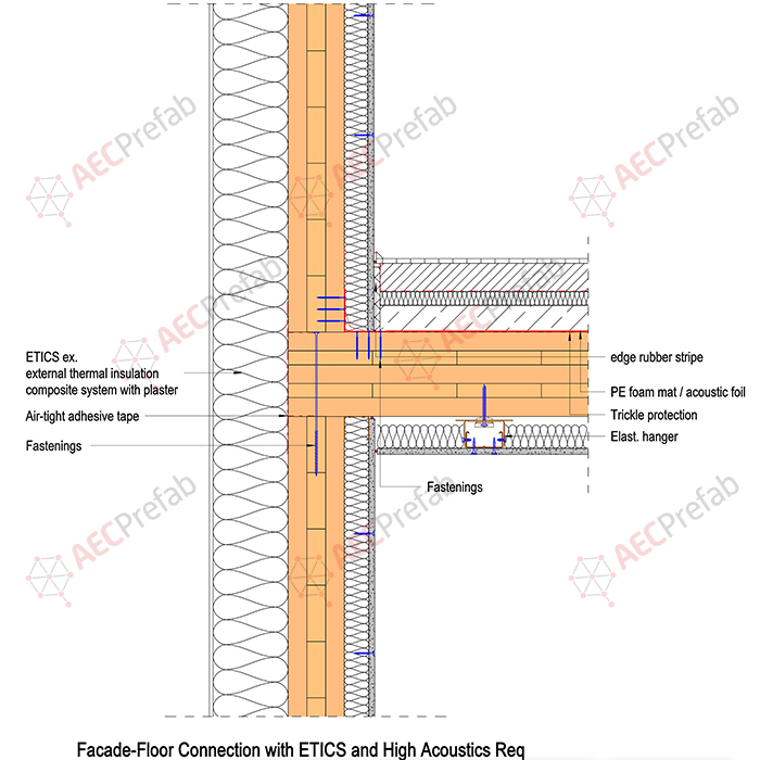 Wall positions in the apartment buildings are easily changeable due to the lack of load-bearing partition walls. The buildings in the construction phase are raised quickly as a steel frame building, including roof installation in few days and followed by weather protection. Large-span panels are used in slabs, and internal shear walls are to maintain the wind stiffness. Facade panels are applied externally onto the frame to maintain the climate function of the structure. Customers can customize the insulation thickness and External cladding material based on their preferences. In a feasible condition, framework panels are also applied to large structures.